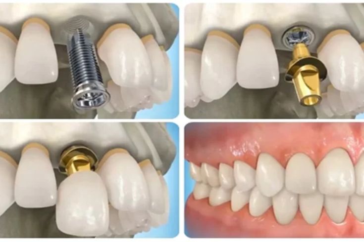 Sau một thời gian, quá trình tích hợp xương (Osseointegration) sẽ diễn ra, tức là xương hàm sẽ phát triển và bám chặt vào bề mặt trụ Implant, tạo thành một liên kết vững chắc, ổn định. Khi đó, một khớp nối (Abutment) và một mão răng sứ sẽ được gắn lên trên trụ Implant để hoàn tất quá trình phục hình, tạo ra một chiếc răng mới hoàn chỉnh cả về thân răng và chân răng. Một chiếc răng Implant hoàn chỉnh có cấu tạo 3 phần rõ rệt: