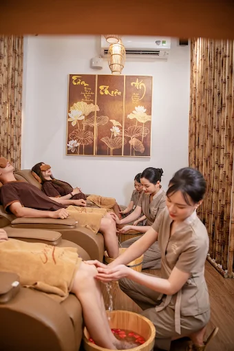 Dịch vụ nổi bật tại Sen Spa là gội đầu dưỡng sinh, kết hợp giữa kỹ thuật xoa bóp chuyên sâu và các bài bấm huyệt nhẹ nhàng giúp thư giãn da đầu, lưu thông khí huyết, cải thiện giấc ngủ và giảm căng thẳng. Không gian ấm áp, tiếng nhạc du dương và hương thảo mộc dịu nhẹ tại đây sẽ khiến bạn cảm nhận như đang bước vào một thế giới hoàn toàn khác – yên tĩnh và chữa lành.
