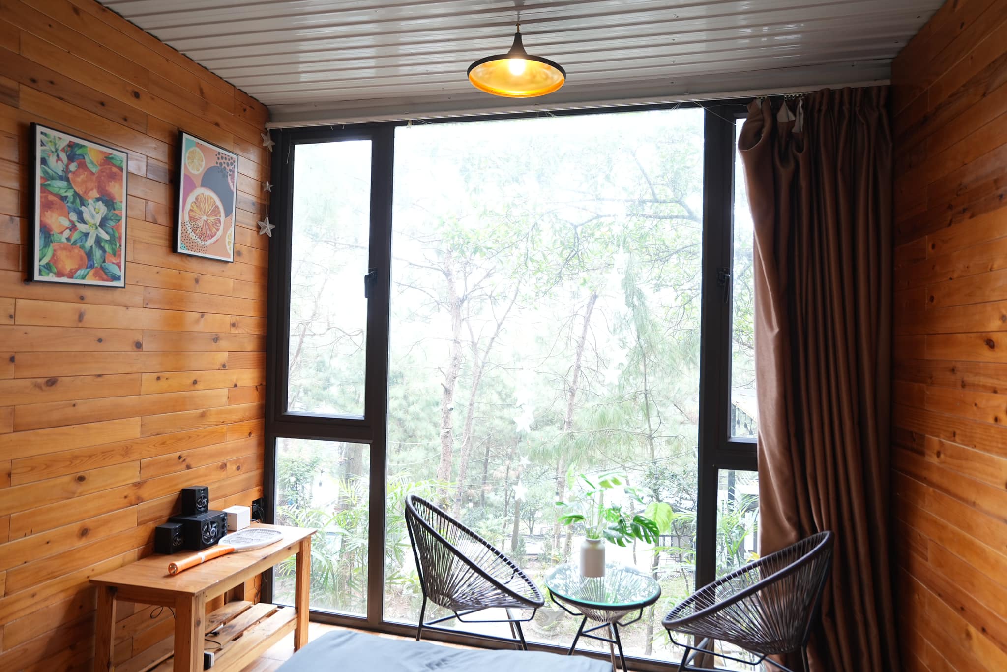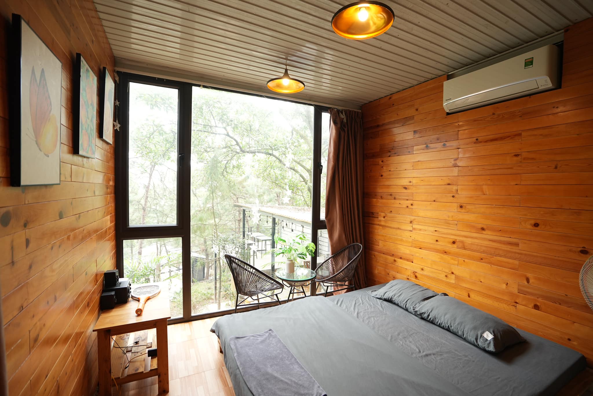- Thiết kế: Tối giản, ấm cúng với nội thất gỗ và cửa kính lớn nhìn thẳng ra rừng thông, giúp bạn "chạm" vào thiên nhiên ngay từ trên giường ngủ.