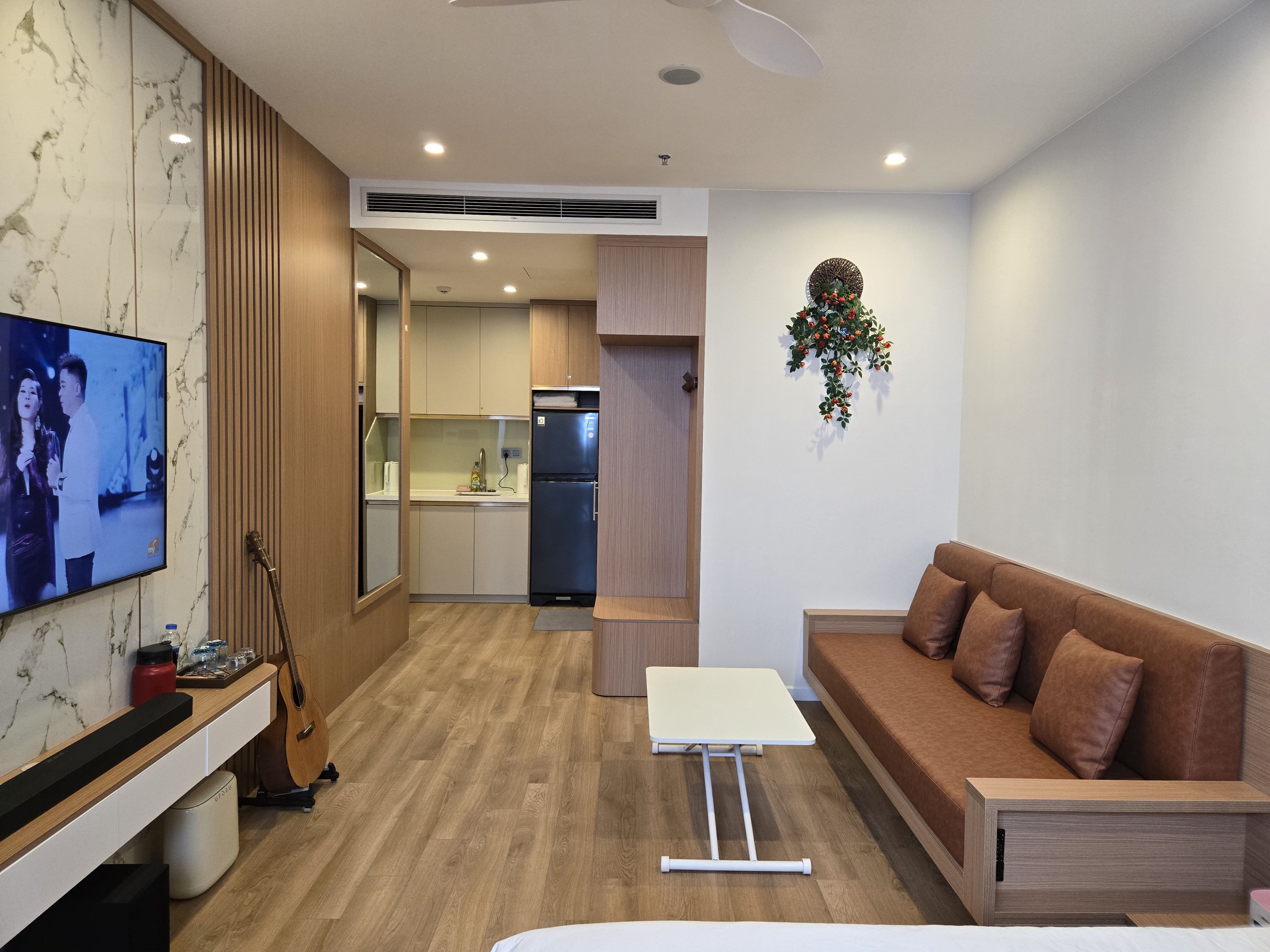 Căn hộ Studio ICON40 Hạ Long Studio - View Vịnh và đảo Rều, nơi không gian sống hiện đại và tiện nghi hòa quyện với vẻ đẹp thiên nhiên tuyệt mỹ của Vịnh Hạ Long. Với thiết kế tối ưu hóa không gian, căn hộ này mang đến cho bạn cảm giác thoáng đãng và dễ chịu ngay từ cái nhìn đầu tiên.