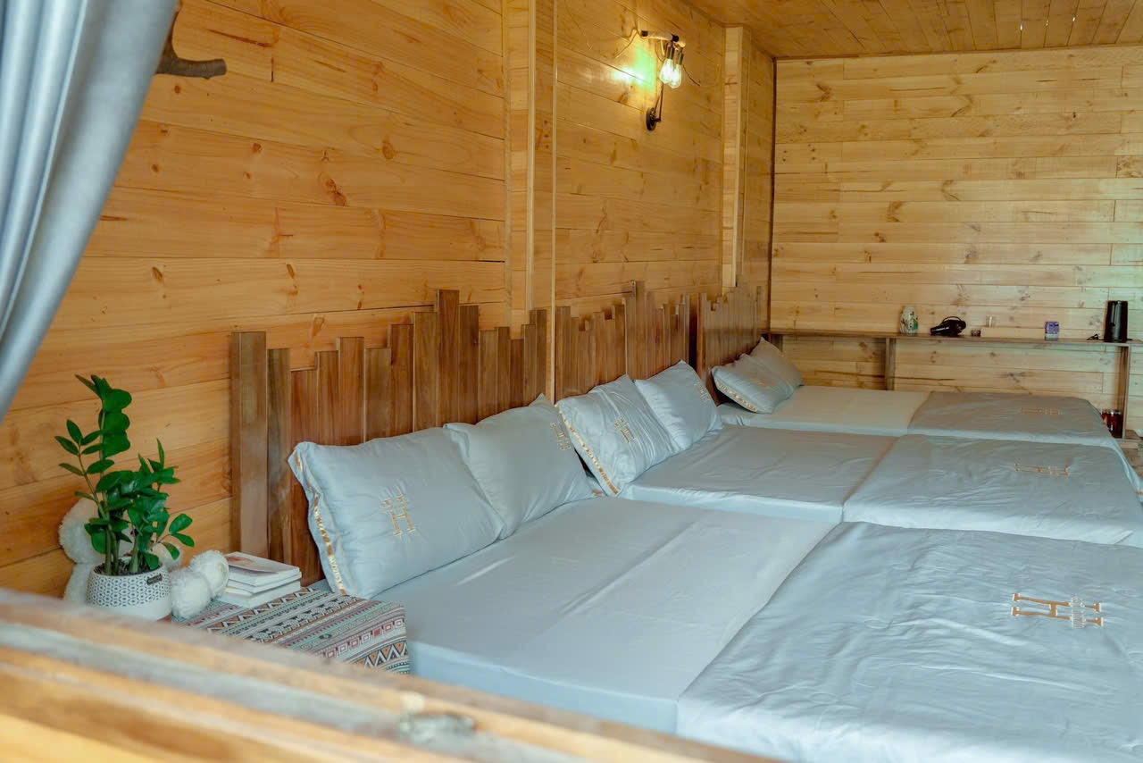 Nội thất bên trong mang phong cách mộc mạc với chất liệu gỗ chủ đạo, tạo cảm giác gần gũi và thân thuộc. Dù giản dị nhưng vẫn không hề thiếu đi những tiện nghi hiện đại cần thiết cho một kỳ nghỉ thoải mái: từ điều hòa, bình nóng lạnh, wifi miễn phí cho đến những vật dụng cá nhân được chuẩn bị chu đáo. Mỗi ngày, phòng của bạn sẽ được dọn dẹp sạch sẽ, bổ sung thêm trà, cà phê và nước suối miễn phí, để bạn luôn cảm thấy được chăm sóc một cách tận tình nhất.