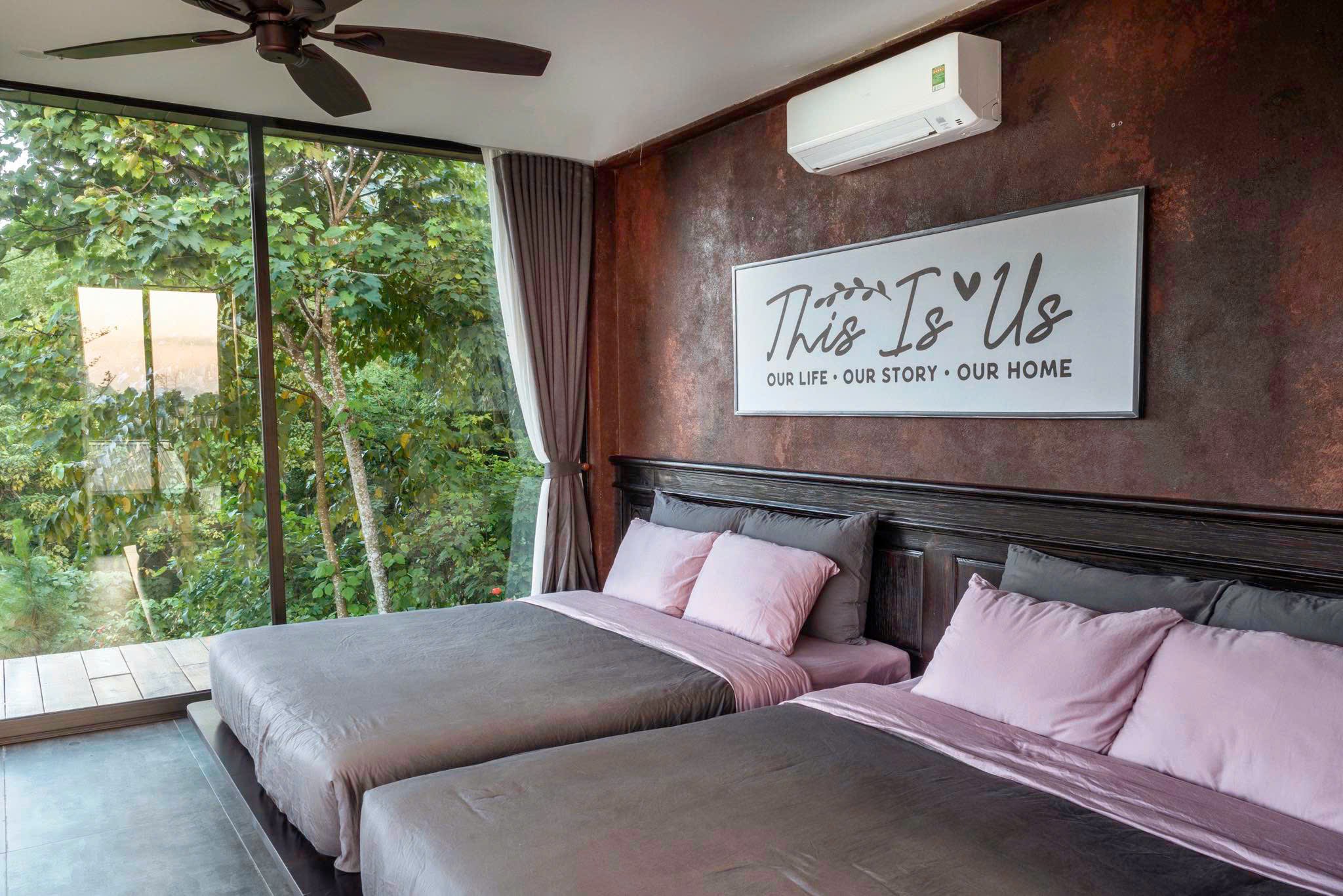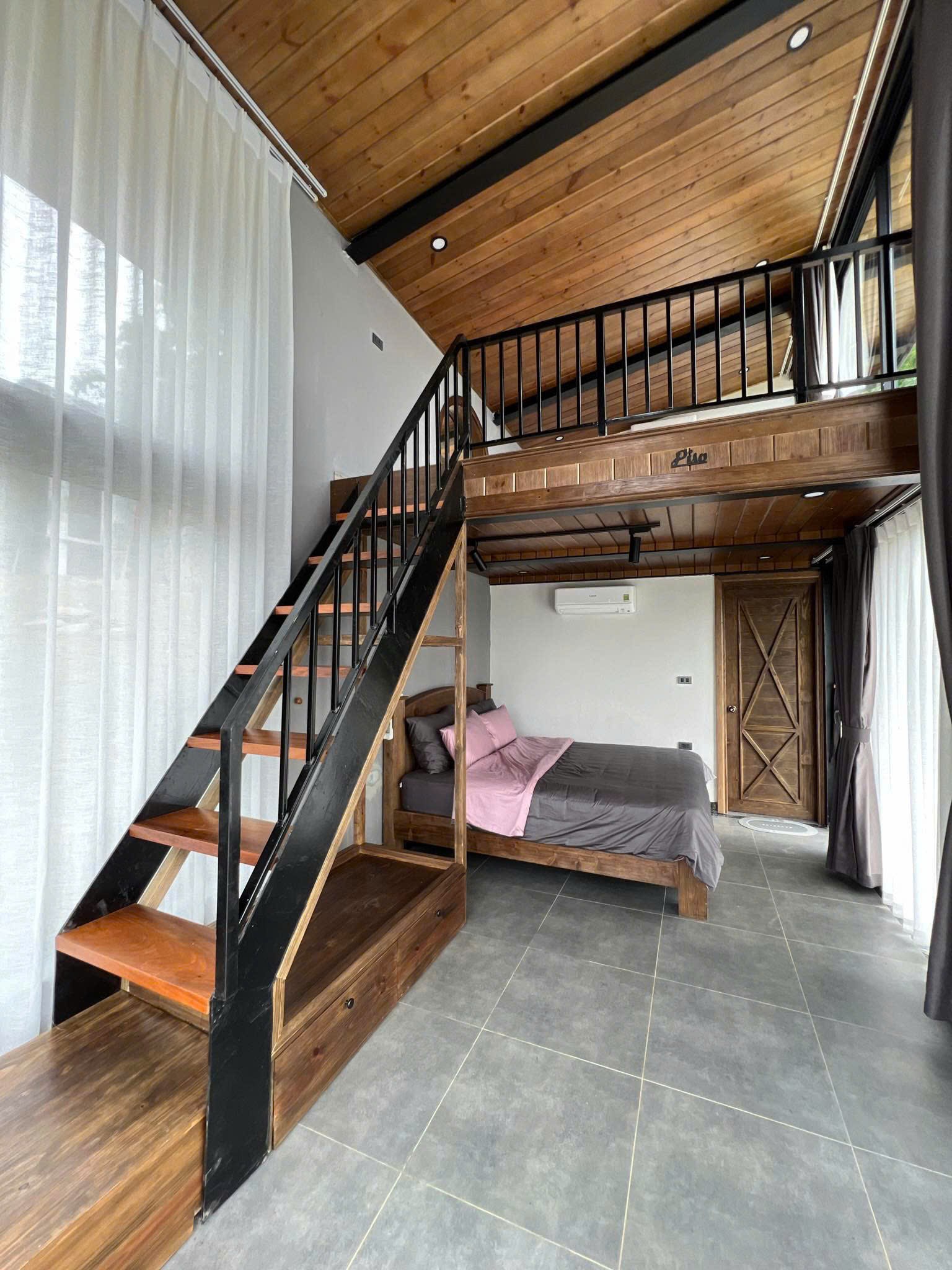 Diện tích rộng rãi: Bungalow có hai giường ngủ, với giường tầng 1 rộng 8m x 2m và gác xép với đệm rộng 8m x 2m, phù hợp cho gia đình hoặc nhóm bạn bè.