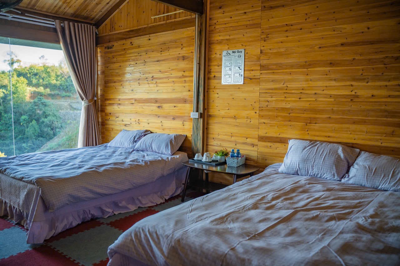 Dù nằm giữa núi rừng hoang sơ, Phòng đôi View sân – Tuyết Eco Tà Xùa Homestay vẫn được chăm chút đầy đủ tiện nghi, để mỗi giấc ngủ của bạn đều thật trọn vẹn: