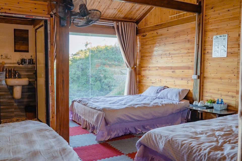 Phòng phù hợp cho gia đình nhỏ hoặc nhóm bạn đi từ 3–6 người, giúp mọi người có thể sinh hoạt cùng nhau, trò chuyện, chơi đùa mà không bị tách rời. Cách bày trí tối giản nhưng tinh tế, hạn chế đồ đạc rườm rà để nhường chỗ cho sự thoáng đãng – đúng chất một nơi “đi trốn” giữa núi rừng.
