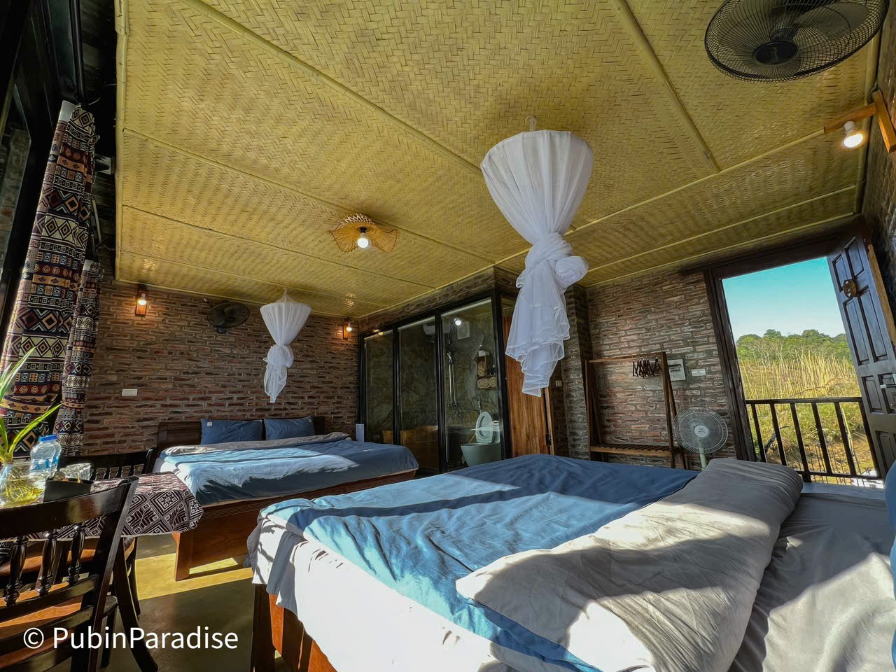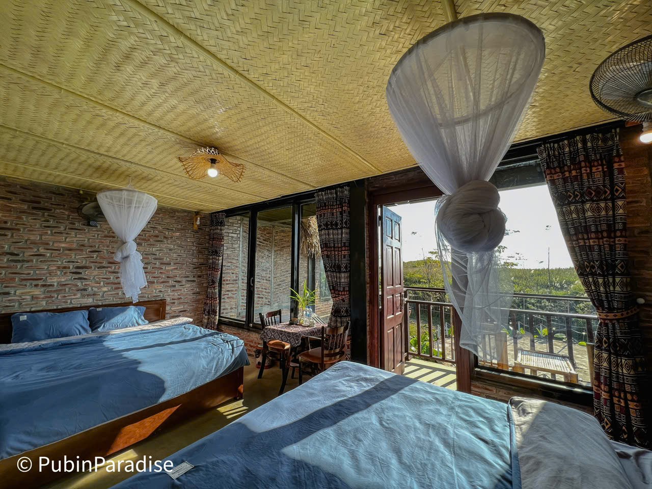 Phòng Deluxe Twin Double tại PuBin Paradise Ecolodge được thiết kế đặc biệt cho các gia đình, với không gian rộng rãi và tiện nghi hiện đại. Với hai giường đôi thoải mái, phòng ngủ này có thể dễ dàng đáp ứng nhu cầu của cả gia đình, mang lại sự thoải mái tối đa cho bạn và những người thân yêu.
