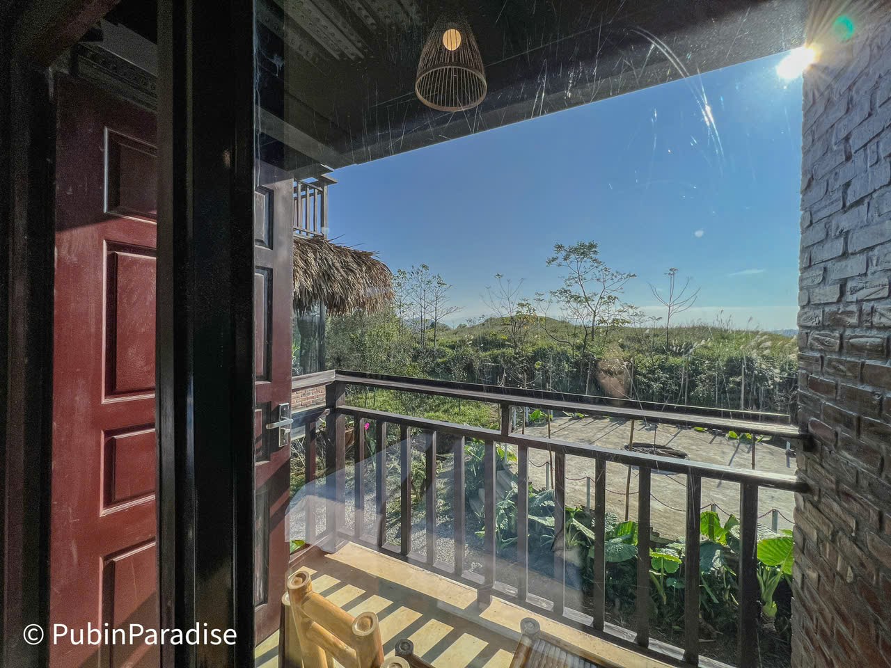 Từ phòng Deluxe Twin Double, bạn có thể ngắm nhìn cảnh quan thiên nhiên tuyệt đẹp của Mai Châu. Ánh sáng mặt trời chiếu rọi qua cửa sổ, tạo nên những khoảnh khắc lãng mạn và bình yên. Đặc biệt, vào buổi chiều, khi hoàng hôn buông xuống, bạn sẽ được chiêm ngưỡng bức tranh thiên nhiên sống động với màu sắc rực rỡ, từ màu vàng ấm áp của ánh nắng đến màu xanh mát của núi rừng.
