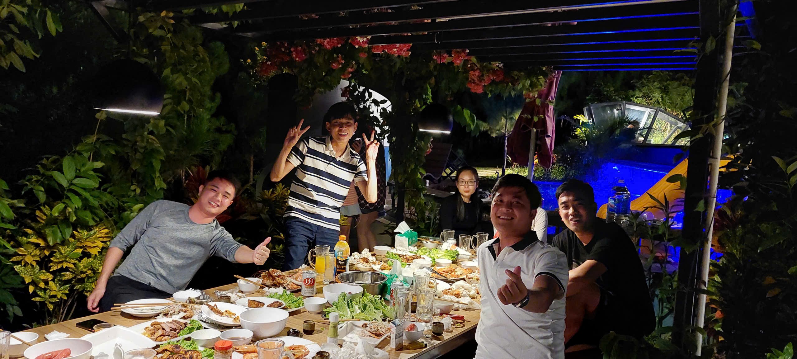 Ngoài ra, villa còn có 2 WC ngoài, giúp đảm bảo sự thuận tiện cho tất cả các thành viên trong nhóm. Không gian bếp ăn trong nhà được trang bị đầy đủ tiện nghi, cho phép bạn thỏa sức sáng tạo những bữa ăn ngon miệng cho gia đình và bạn bè. Đặc biệt, khu vực bếp ngoài vườn sẽ là nơi lý tưởng để tổ chức những bữa tiệc BBQ thú vị giữa không gian xanh mát.